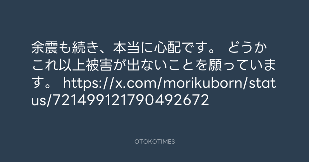 余震も続き、本当に心配です。 どうかこれ以上被害が出ないことを願っています。 h... -