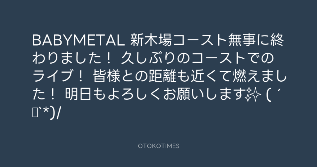 BABYMETAL 新木場コースト無事に終わりました! 久しぶりのコーストでのライブ! ... -