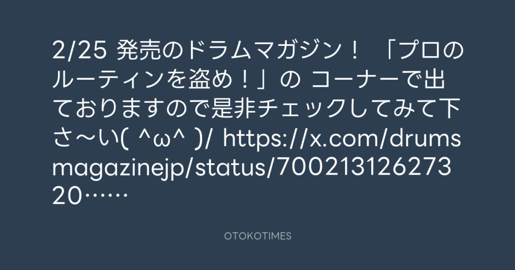 2/25 発売のドラムマガジン! 「プロのルーティンを盗め!」の コーナーで出ており... -