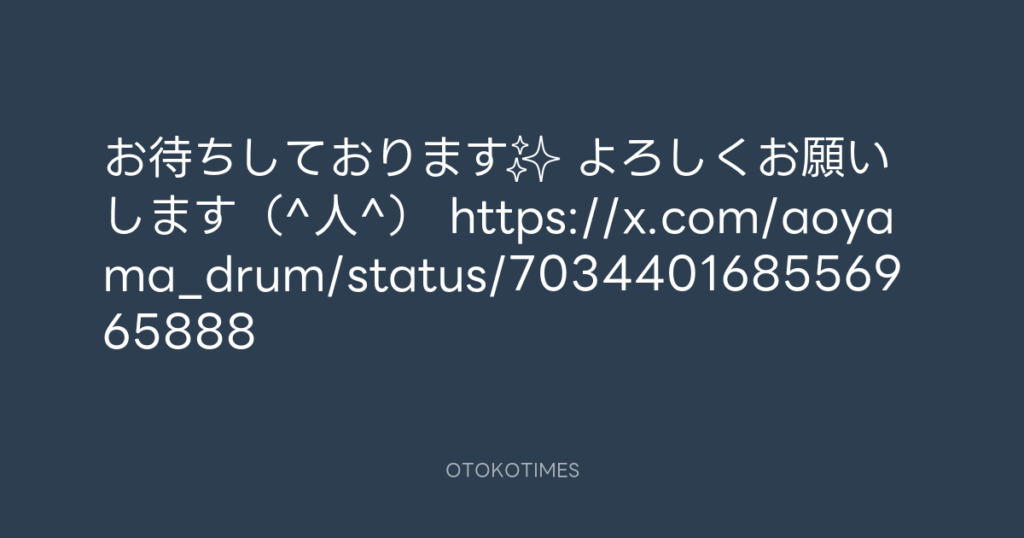 お待ちしております✨ よろしくお願いします(^人^) https://x.com/aoyama_drum/s... -