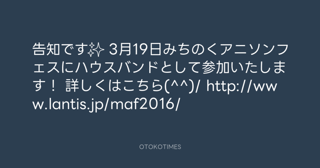 告知です✨ 3月19日みちのくアニソンフェスにハウスバンドとして参加いたします! ... -