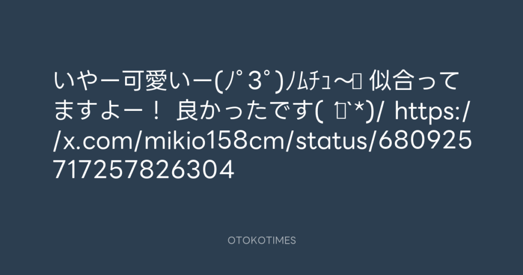 いやー可愛いー(ノ゚3゚)ノムチュ〜♡ 似合ってますよー! 良かったです(´▽`*)/ https://x.... -