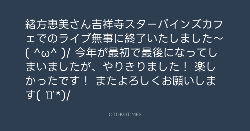 緒方恵美さん吉祥寺スターパインズカフェでのライブ無事に終了いたしました〜( ^ω^... -