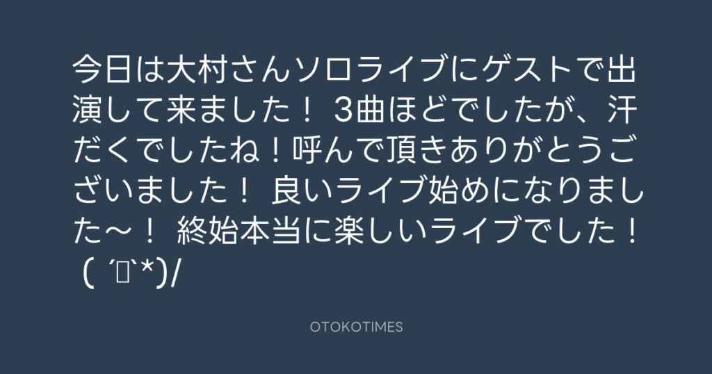 今日は大村さんソロライブにゲストで出演して来ました! 3曲ほどでしたが、汗だく... -