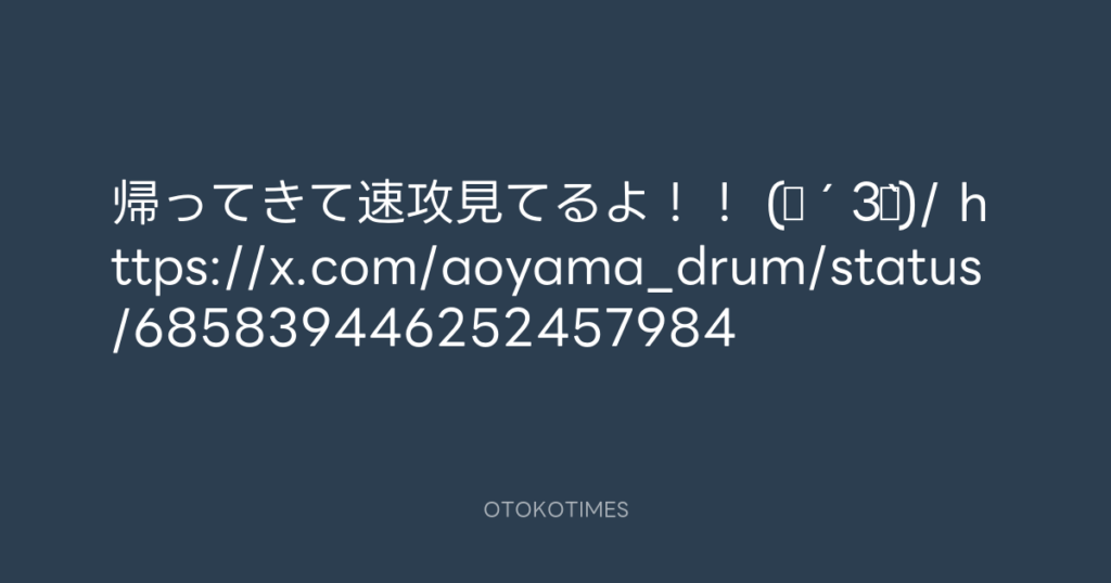 帰ってきて速攻見てるよ!! (○´3`○)/ https://x.com/aoyama_drum/status/68583944... -