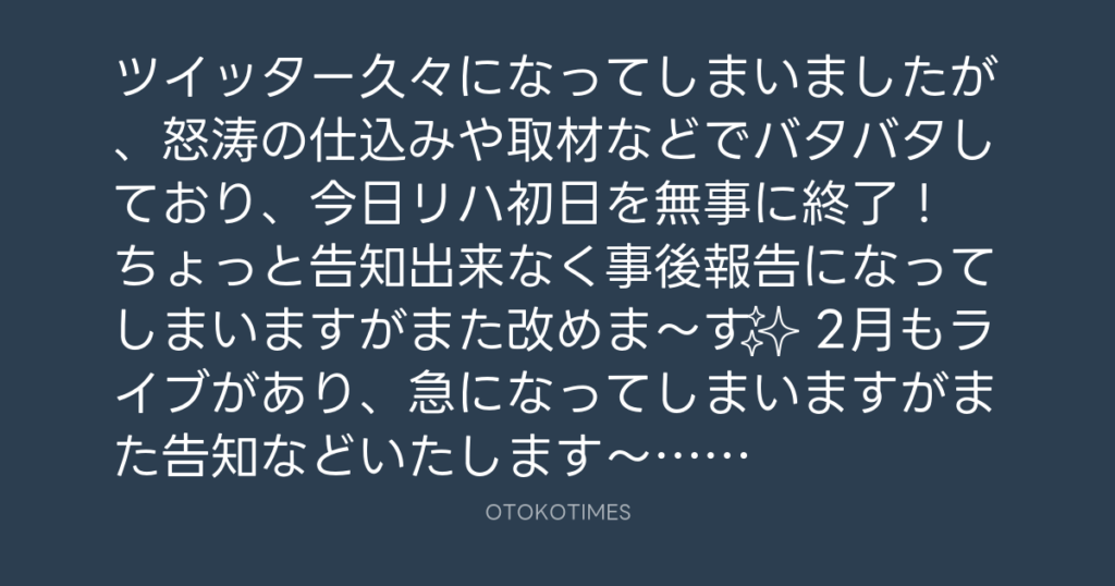 ツイッター久々になってしまいましたが、怒涛の仕込みや取材などでバタバタしてお... -