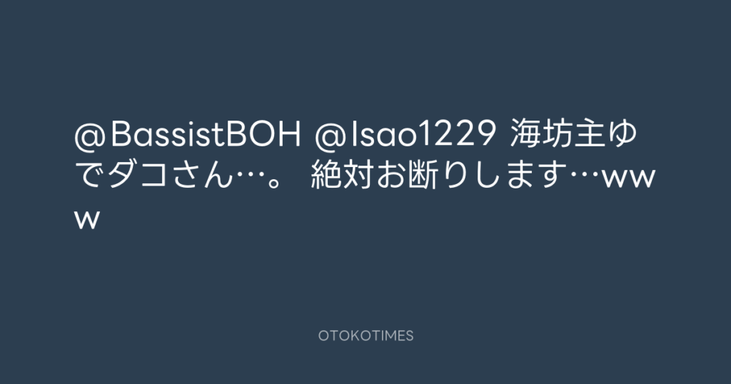 @BassistBOH @Isao1229 海坊主ゆでダコさん…。 絶対お断りします…www