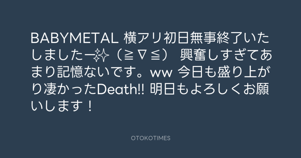 BABYMETAL 横アリ初日無事終了いたしましたー✨(≧∇≦) 興奮しすぎてあまり記憶な... -