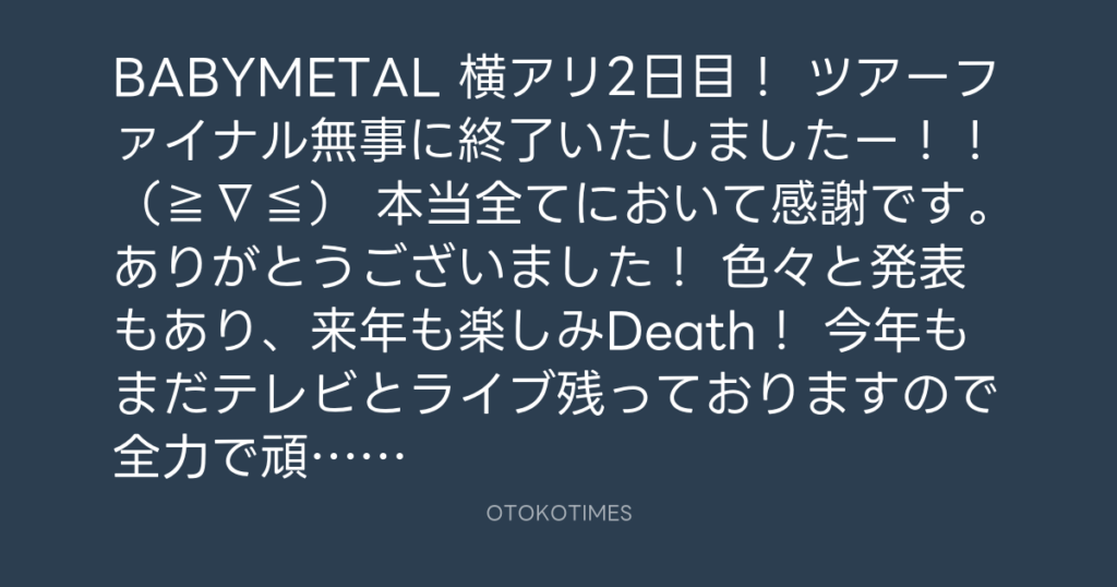 BABYMETAL 横アリ2日目! ツアーファイナル無事に終了いたしましたー!!(≧∇≦) ... -