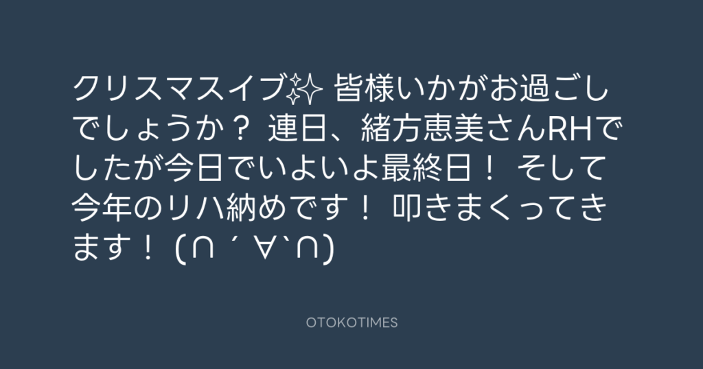 クリスマスイブ✨ 皆様いかがお過ごしでしょうか? 連日、緒方恵美さんRHでしたが... -