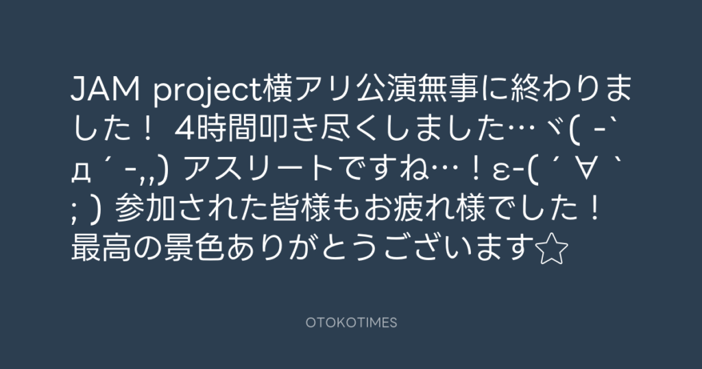JAM project横アリ公演無事に終わりました! 4時間叩き尽くしました…ヾ( -`д´-,,) ... -