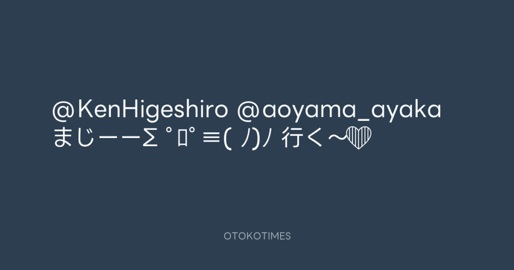 @KenHigeshiro @aoyama_ayaka まじーーΣ ゚ロ゚≡( ノ)ノ 行く〜❤️ -