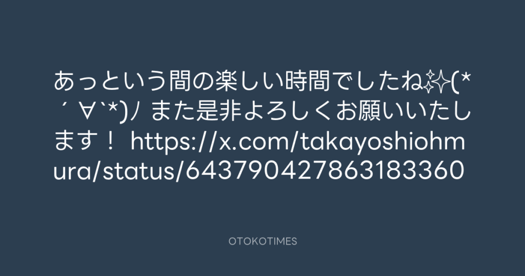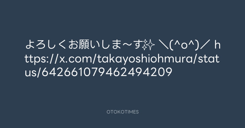 よろしくお願いしま〜す✨ \(^o^)/ https://x.com/takayoshiohmura/status/64266...