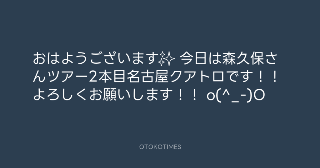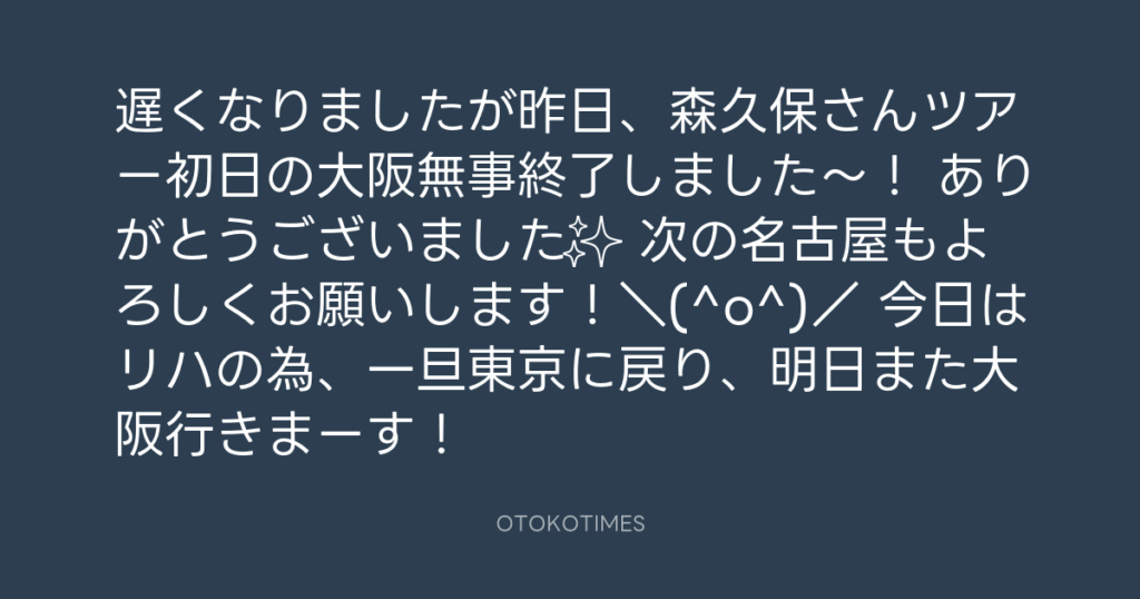 遅くなりましたが昨日、森久保さんツアー初日の大阪無事終了しました〜! ありがと... -