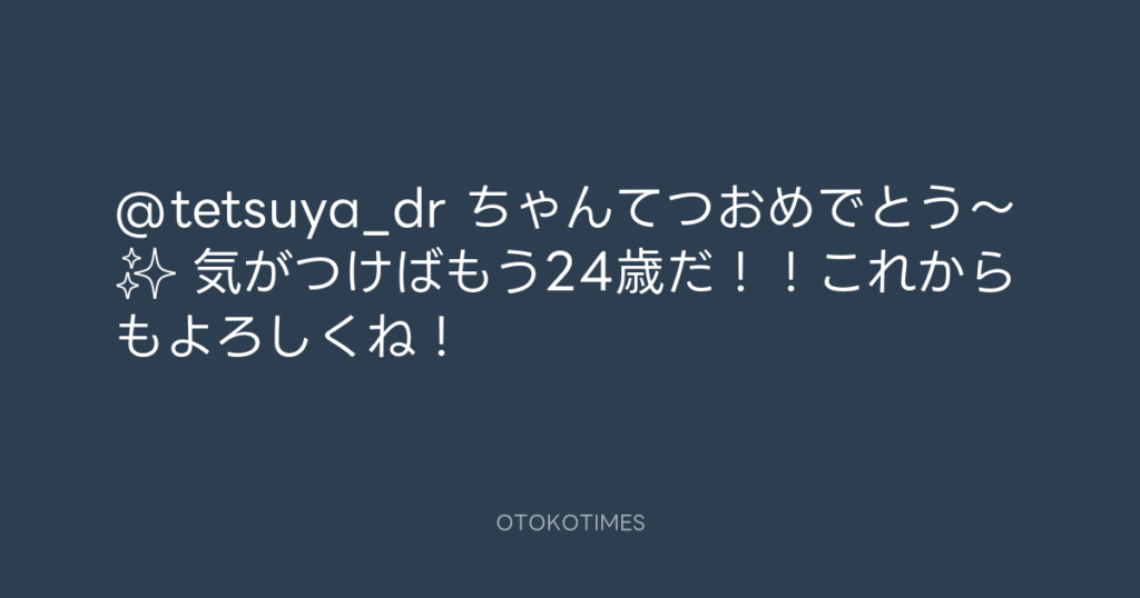 @tetsuya_dr ちゃんてつおめでとう〜✨ 気がつけばもう24歳だ!!これからもよろし... -