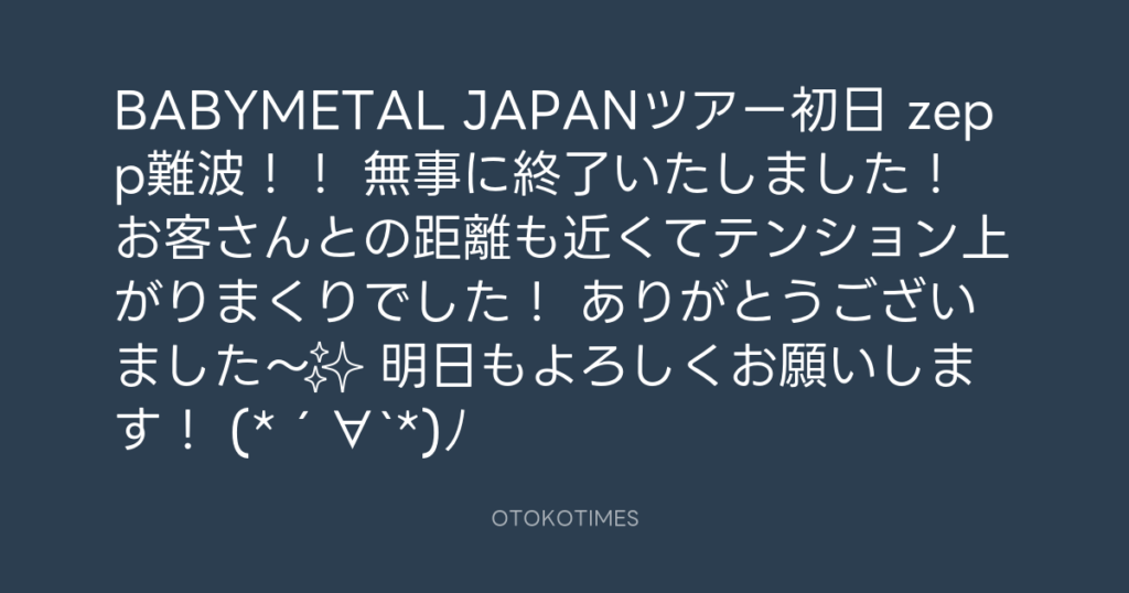 BABYMETAL JAPANツアー初日 zepp難波!! 無事に終了いたしました! お客さんとの... -
