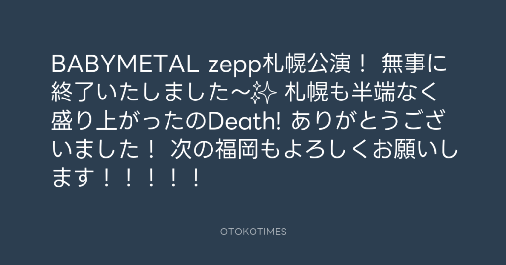 BABYMETAL zepp札幌公演! 無事に終了いたしました〜✨ 札幌も半端なく盛り上がっ... -