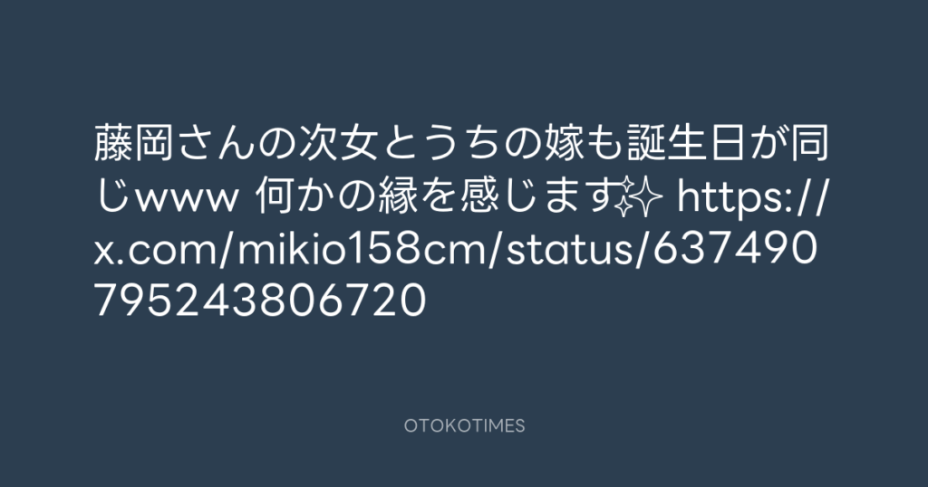 藤岡さんの次女とうちの嫁も誕生日が同じwww 何かの縁を感じます✨ https://x.com/...