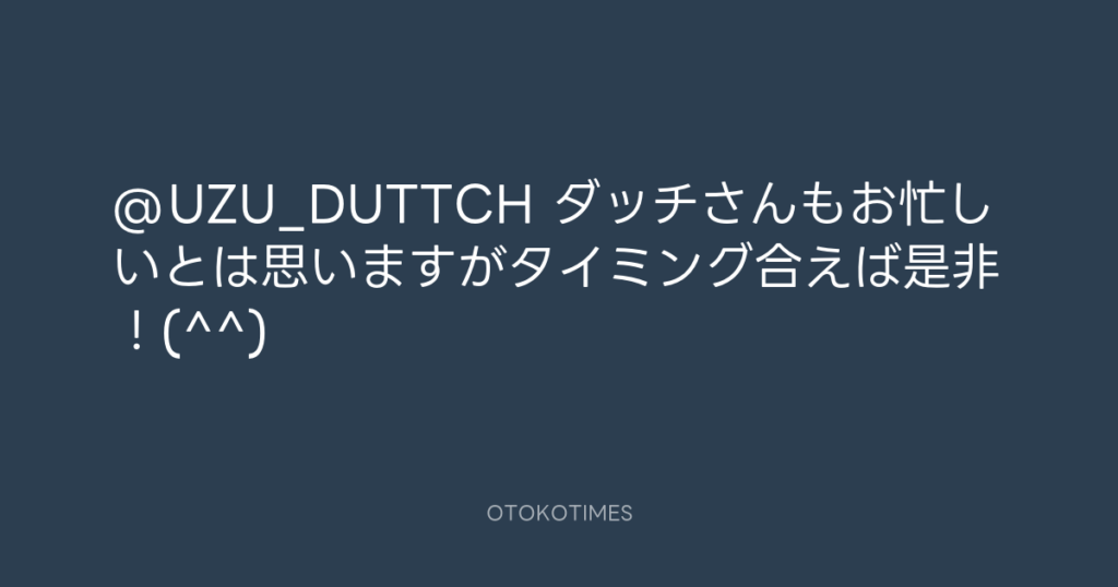 @UZU_DUTTCH ダッチさんもお忙しいとは思いますがタイミング合えば是非!(^^) -