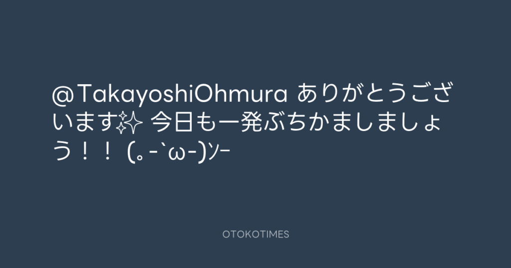 @TakayoshiOhmura ありがとうございます✨ 今日も一発ぶちかましましょう!! (。-`... -