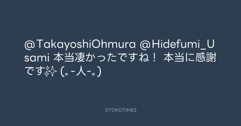 @TakayoshiOhmura @Hidefumi_Usami 本当凄かったですね! 本当に感謝です✨ (。-人-。) -