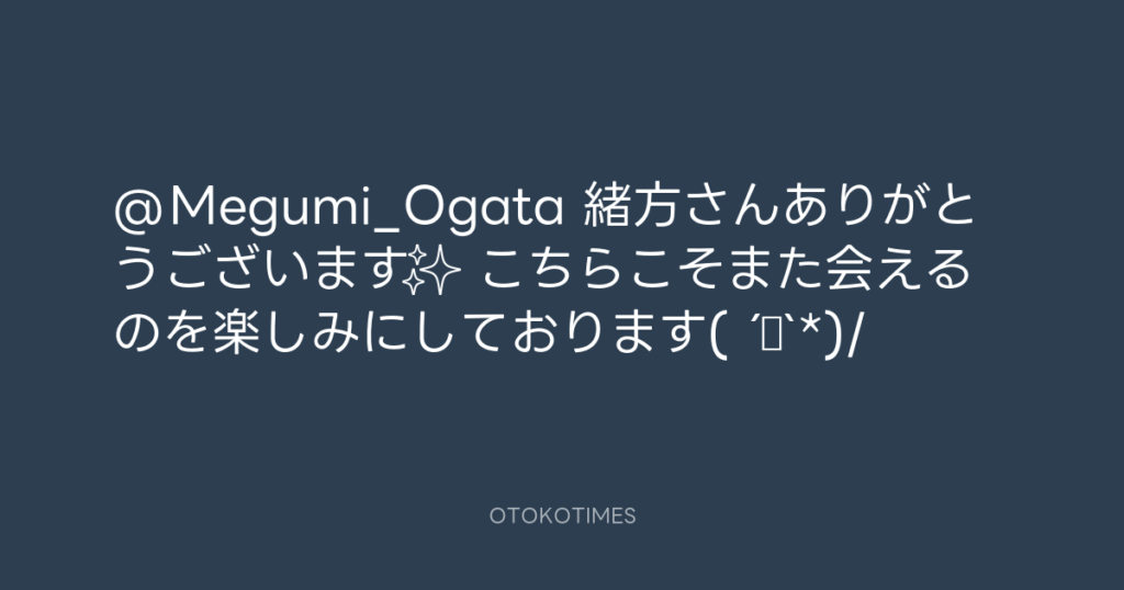 @Megumi_Ogata 緒方さんありがとうございます✨ こちらこそまた会えるのを楽しみに... -