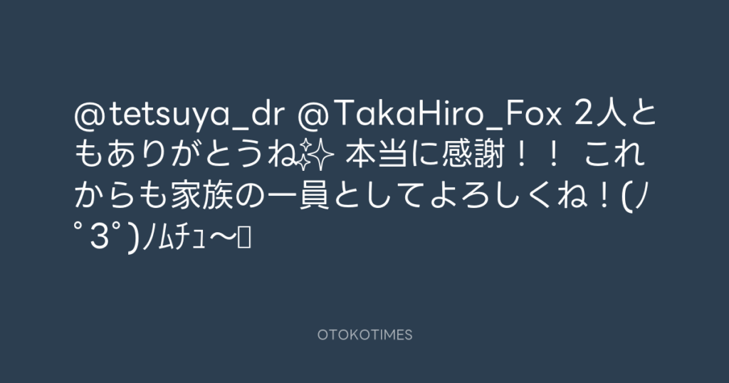 @tetsuya_dr @TakaHiro_Fox 2人ともありがとうね✨ 本当に感謝!! これからも家族... -