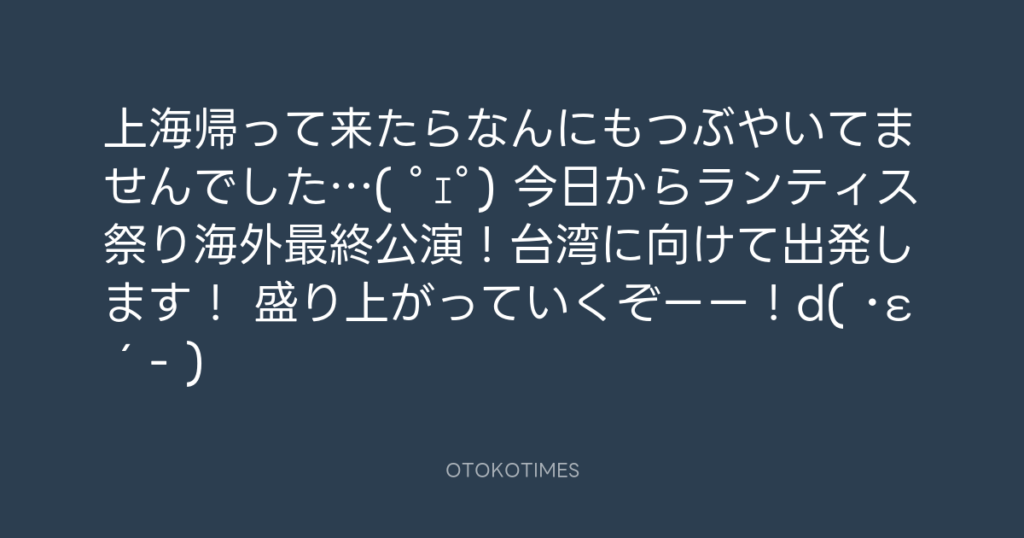 ランティス祭り台湾公演2days無事に終了いたしましたー(*´∀`*)ノ これにて全公演終... -