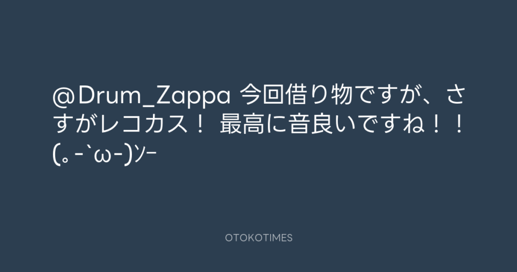 @Drum_Zappa 今回借り物ですが、さすがレコカス! 最高に音良いですね!!(。-`ω-)ンー -