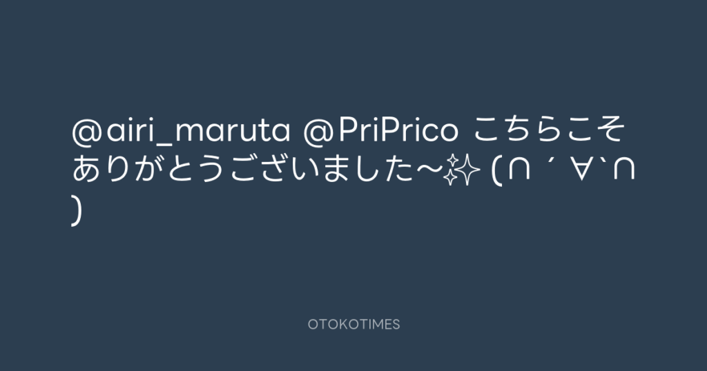 @airi_maruta @PriPrico こちらこそありがとうございました〜✨ (∩´∀`∩) -