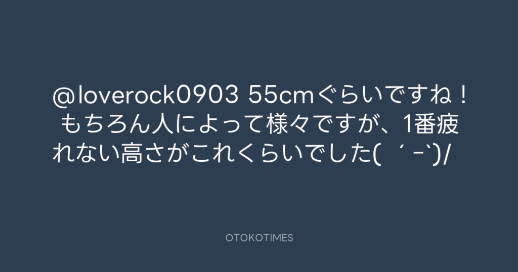 @loverock0903 55cmぐらいですね! もちろん人によって様々ですが、1番疲れない高... -