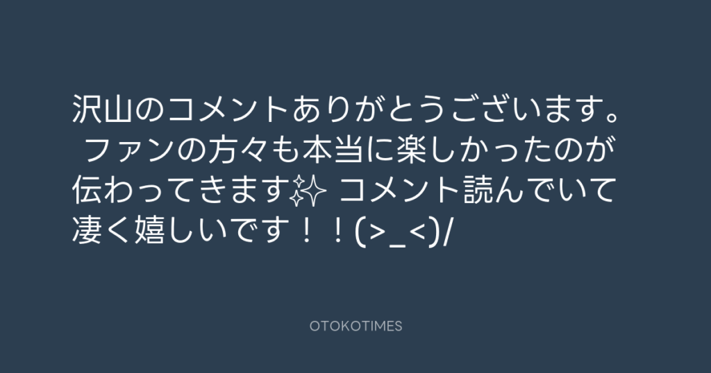 沢山のコメントありがとうございます。 ファンの方々も本当に楽しかったのが伝わっ...