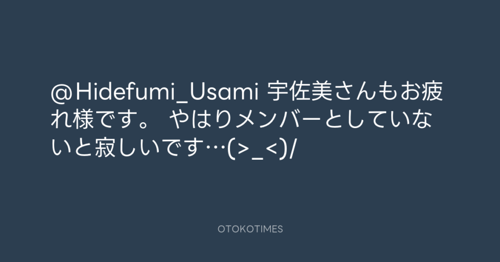 @Hidefumi_Usami 宇佐美さんもお疲れ様です。 やはりメンバーとしていないと寂しい... -