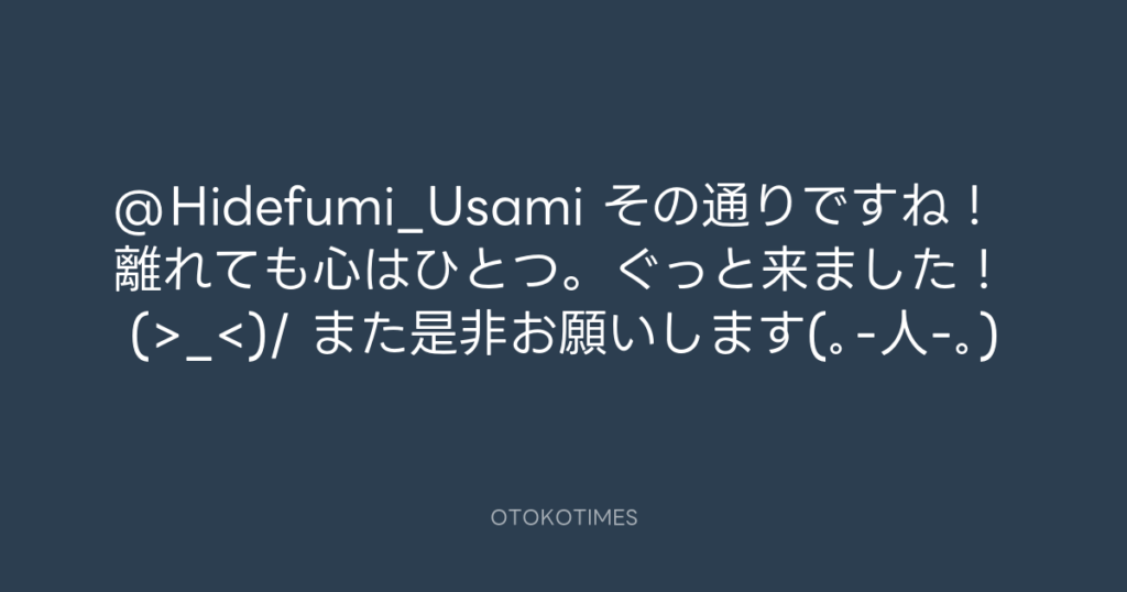 @Hidefumi_Usami その通りですね! 離れても心はひとつ。ぐっと来ました! (>_&... -