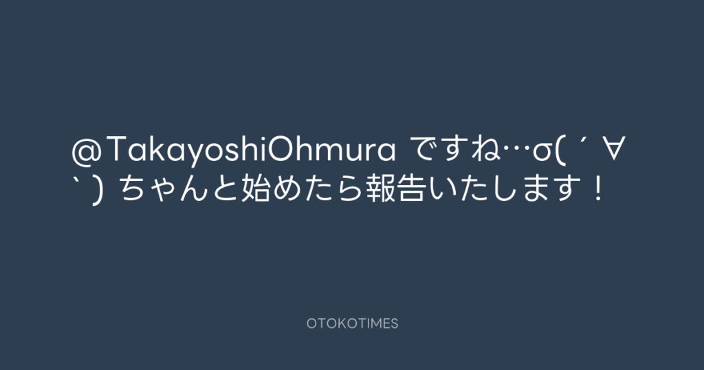@TakayoshiOhmura ですね…σ(´∀` ) ちゃんと始めたら報告いたします! -