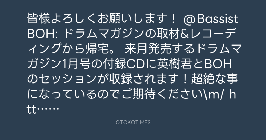 皆様よろしくお願いします! @BassistBOH: ドラムマガジンの取材&レコーディン... -
