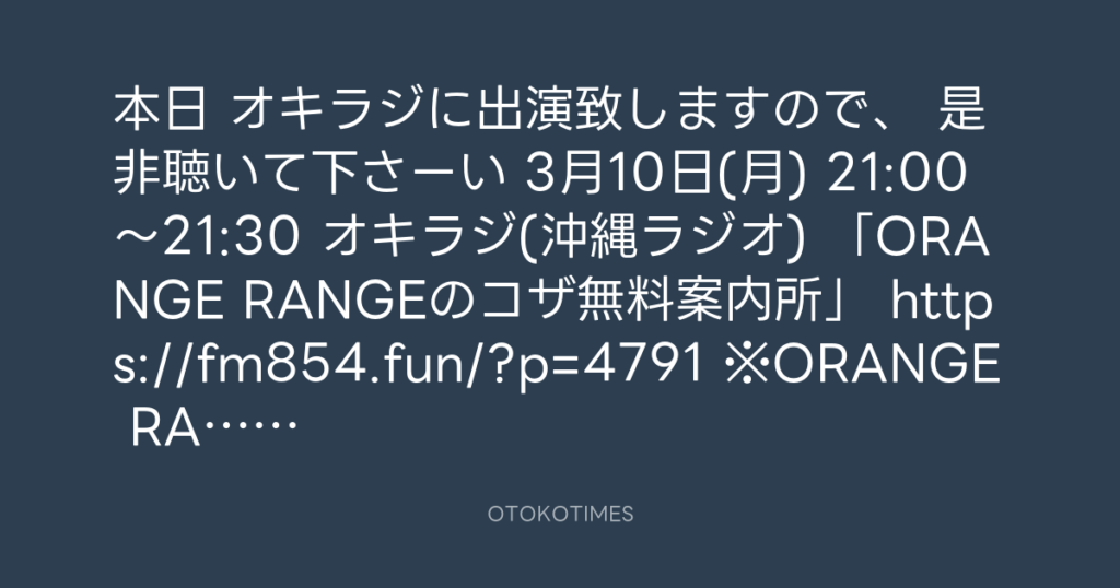本日 オキラジに出演致しますので、 是非聴いて下さーい🍊 3月10日(月) 21:00〜21:... -