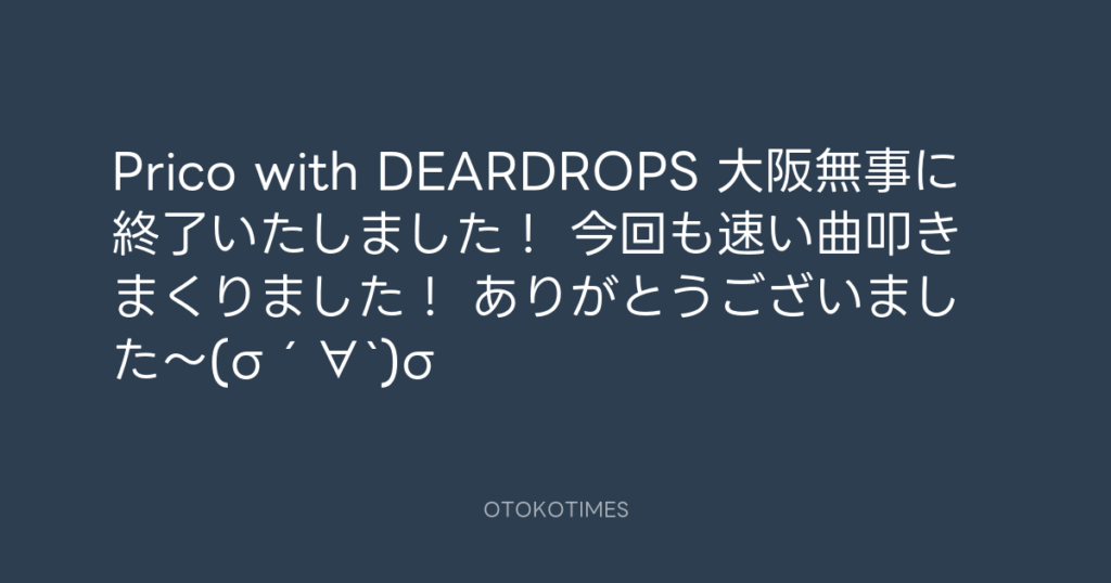 Prico with DEARDROPS 大阪無事に終了いたしました! 今回も速い曲叩きまくりまし...