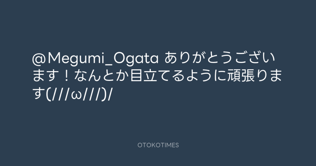 @Megumi_Ogata ありがとうございます!なんとか目立てるように頑張ります(///ω///)/ -