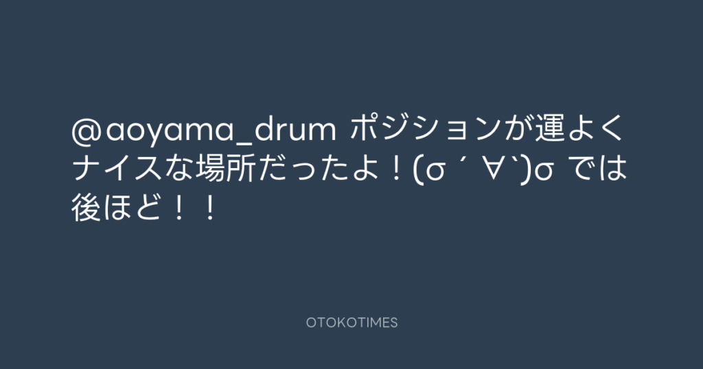 @aoyama_drum ポジションが運よくナイスな場所だったよ!(σ´∀`)σ では後ほど!! -