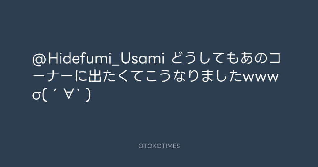 @Hidefumi_Usami どうしてもあのコーナーに出たくてこうなりましたwwwσ(´∀` ) -