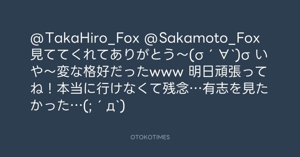 @TakaHiro_Fox @Sakamoto_Fox 見ててくれてありがとう〜(σ´∀`)σ いや〜変な格好だ... -