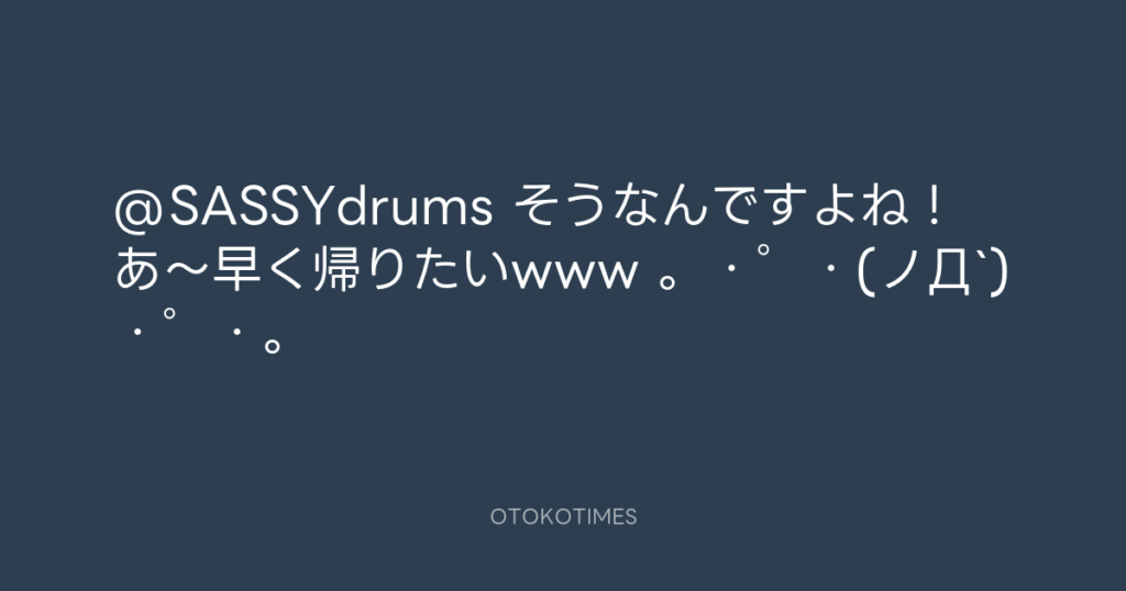 @SASSYdrums そうなんですよね! あ〜早く帰りたいwww 。・゜・(ノД`)・゜・。 -