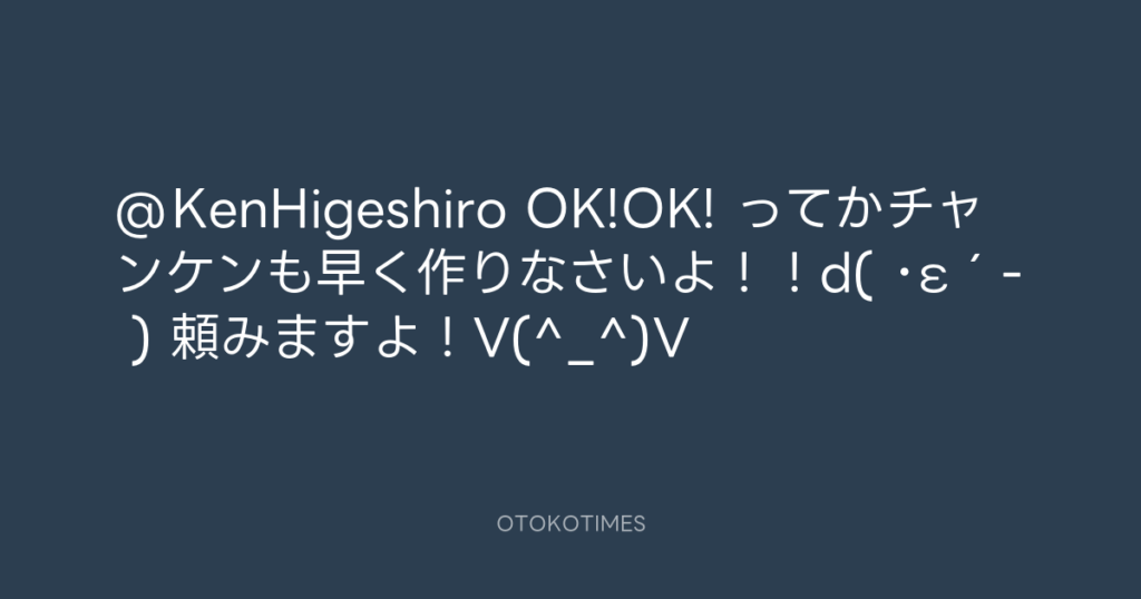@KenHigeshiro OK!OK! ってかチャンケンも早く作りなさいよ!!d( ・ε´- ) 頼みます... -