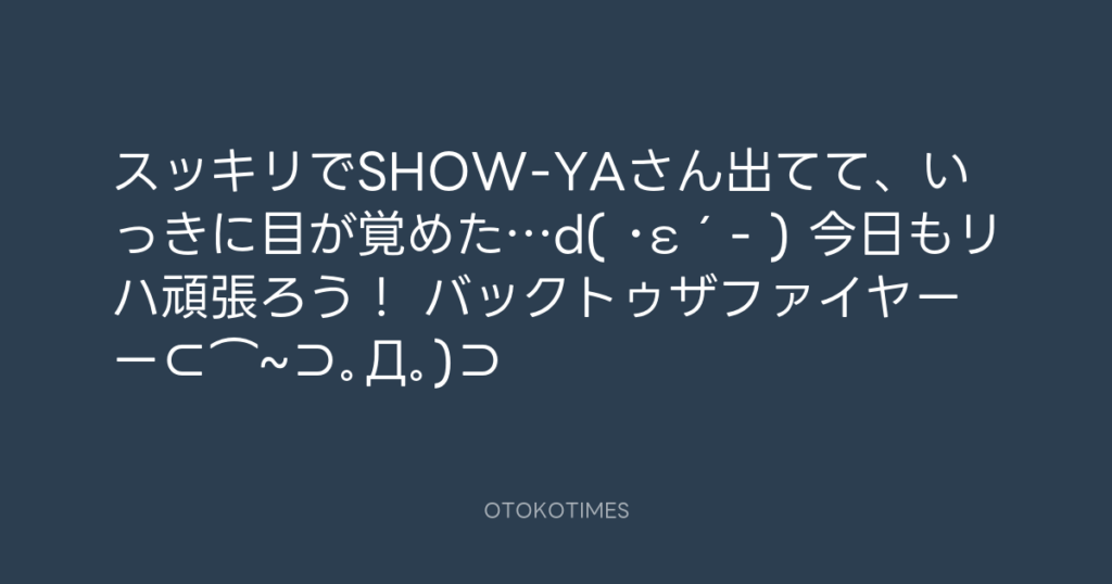 スッキリでSHOW-YAさん出てて、いっきに目が覚めた…d( ・ε´- ) 今日もリハ頑張ろう... -