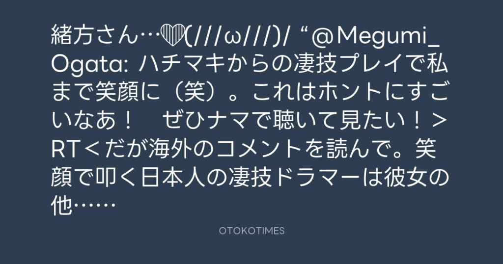 緒方さん…❤️(///ω///)/ “@Megumi_Ogata: ハチマキからの凄技プレイで私まで笑顔に... -