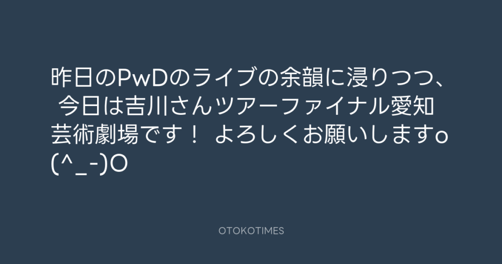昨日のPwDのライブの余韻に浸りつつ、 今日は吉川さんツアーファイナル愛知芸術劇... -
