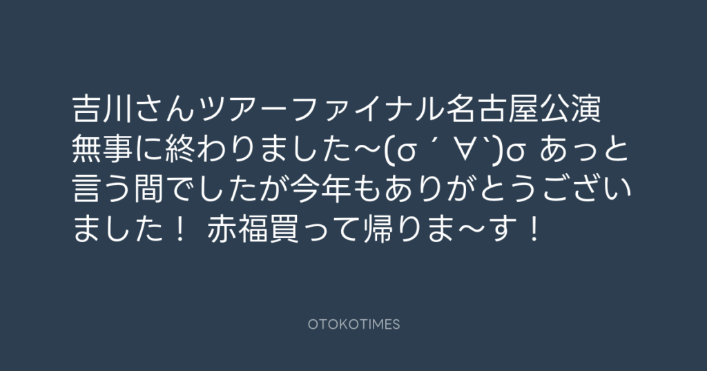 吉川さんツアーファイナル名古屋公演 無事に終わりました〜(σ´∀`)σ あっと言う間で... -
