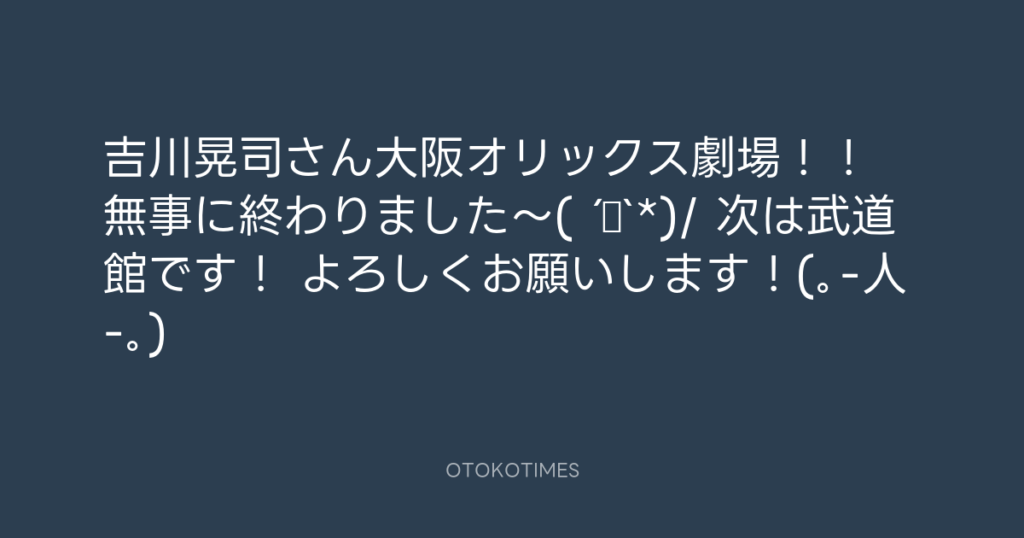 吉川晃司さん大阪オリックス劇場!! 無事に終わりました〜(´▽`*)/ 次は武道館です...