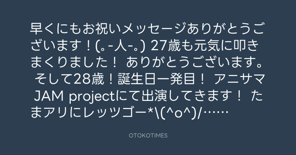早くにもお祝いメッセージありがとうございます!(。-人-。) 27歳も元気に叩きまくり... -